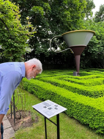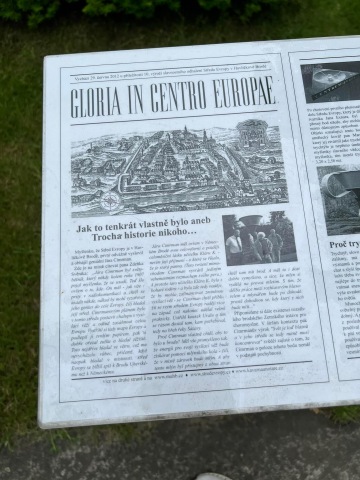 Když se Jára Cimrman chtěl usadit, potřeboval najít místo, odkud by jeho génius vyzařoval do celé Evropy a hledal proto její střed. Vystřihl mapu Evropy a tužkou hledal její těžiště. Po odstřižení Uralu zjistil, že je to právě v Havlíčkově Brodě. Jelikož mám tento humor moc rád, zašel jsem se tam podívat. Místo se nachází v zahradě hned za pumpou.
