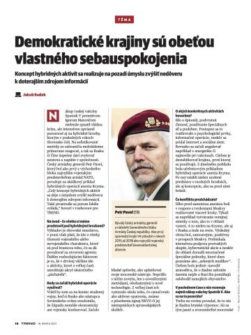 Nákup ruskej vakcíny Sputnik V premiérom Igorom Matovičom nielenže spustil vládnu krízu, ale intenzívne upriamil pozornosť aj na hybridné hrozby, ktorým v posledných rokoch Slovensko čelí. Na sofistikované metódy zo zahraničia nedokážeme primerane reagovať, a tak sa Rusku či Číne úspešne darí zvyšovať neistotu a napätie v spoločnosti. Český armádny generál Petr Pavel, ktorý bol ako prvý z východného bloku najvyšším vojenským predstaviteľom armád NATO, považuje za ukážkový príklad hybridných operácií anexiu Krymu. „Celý koncept hybridných aktivít sa deje s úmyslom zvýšiť nedôveru k doterajším zdrojom informácií. Také prostredie sa potom ľahšie ovláda,“ hovorí v rozhovore pre TREND.